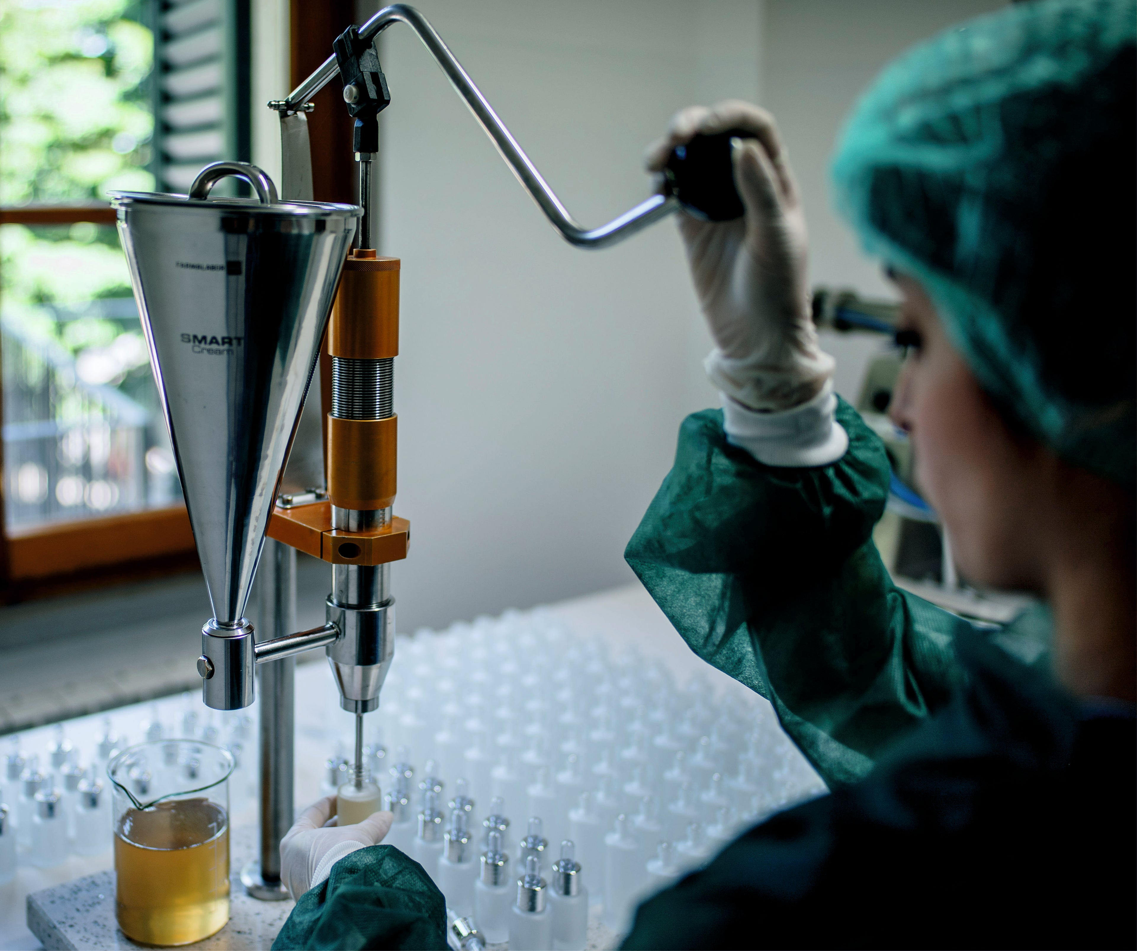 Grazie ad un team completo e professionale gestiamo internamente tutti gli aspetti della realizzazione e produzione del cosmetico: dalla ricerca scientifica che si sviluppa in studio formulativo in risposta alle richieste ed esigenze di mercato, alla produzione secondo i modus operandi che garantiscono il rispetto delle GMP, la pulizia degli ambienti, la precisione delle metodiche di analisi e controllo del prodotto finito, fino alla realizzazione grafica, stampa ed etichettatura manuale del prodotto.